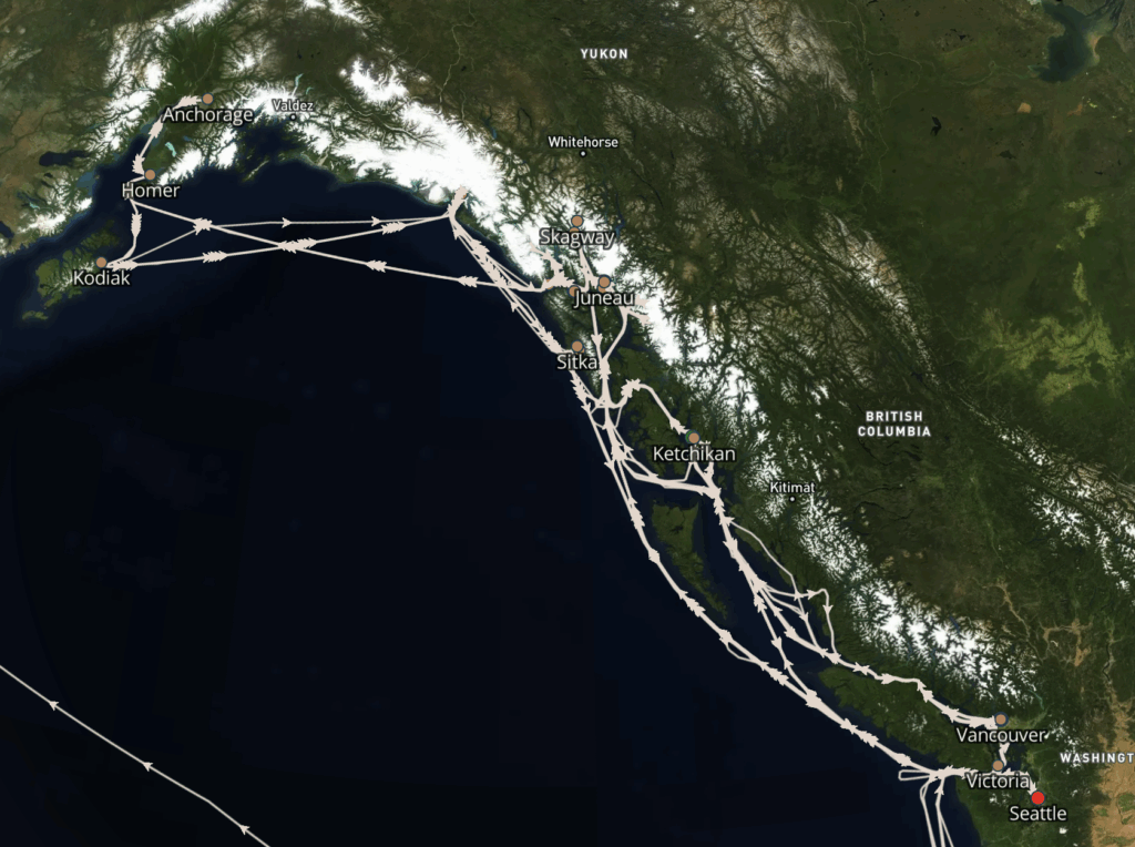 The iconic Inside Passage is only fully experienced on cruises that sail to, from, or roundtrip from Vancouver. Even then, not every ship (especially larger ones) goes through the full route. If you’re departing from Seattle and see “Inside Passage” on the itinerary, know that it’s typically just a partial experience—often just the stretch near Ketchikan.